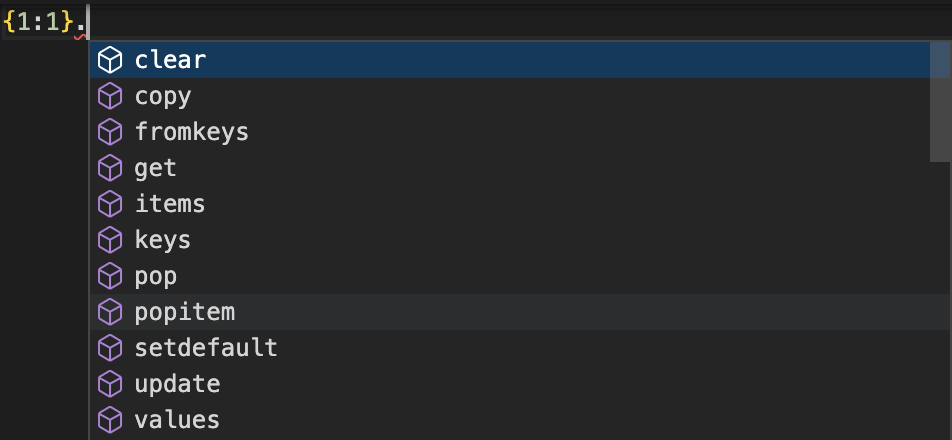 clear는 말 그대로 딕셔너리 안의 모든 키-밸류 쌍을 없애버린다. 딕셔너리 자체는 빈 딕셔너리로 남는다.