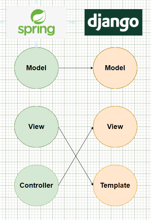 스프링/MVC에서의 View는 화면(MVT의 template)를 이야기하고, Controller는 MVT의 view를 이야기 하는 것이라고 생각하면 이해하기 좋다.