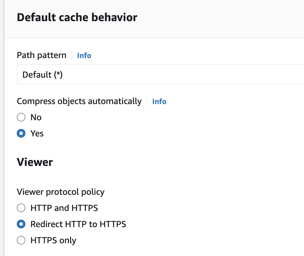 HTTPS를 적용하기 위해 Redirect HTTP to HTTPS 옵션을 선택한다.